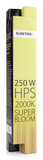 Die Elektrox SUPER BLOOM ist eine Blütelampe mit einer Leistung von 250 W und einer Netzspannung von 220-240 V. Du betreibst das Leuchtmittel bei einer Netzfrequenz von 50 Hz. Die SUPER BLOOM 250 W von Elektrox besticht durch ihre lange Betriebszeit von über 32000 h und besteht aus einem klaren T4-Kolben sowie einer E40-Fassung.
