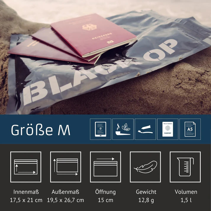DISKRET: Undurchsichtige Taschen für zusätzliche Privatsphäre. Für Dokumente, Hygieneartikel oder Genussmittel. Gerüche bleiben im Beutel.