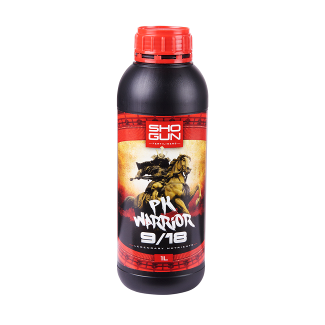 SHOGUN PK WARRIOR 9/18 nutzt sein besonderes Phosphor-Kalium-Verhältnis, um alle anderen PK-Zusätze zu übertreffen. Die Rezeptur wurde gezielt zusammengestellt, um deine Pflanzen mit erntefördernden Zutaten zu überschütten. Zusammengesetzt für maximale Pflanzenverfügbarkeit bietet SHOGUN PK WARRIOR 9/18 eine konzentrierte Erhöhung der Blütenelemente in jedem Nährstoffpaket. Es erhöht die Frucht- und Blütenproduktion für maximale Erträge.